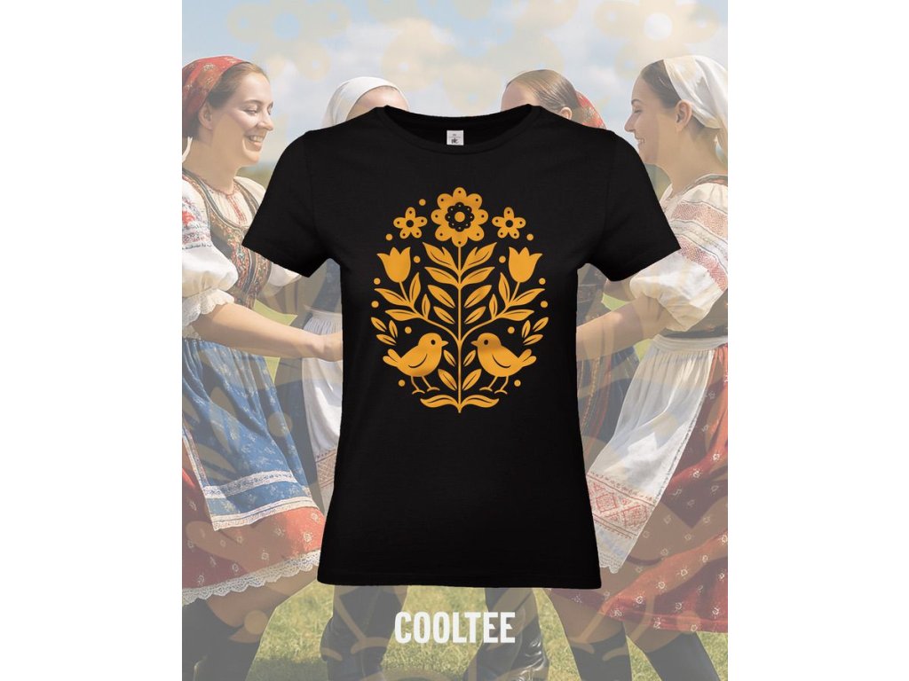 Dámske tričko s ľudovým folklórnym vzorom je ideálnou voľbou pre každú ženu, ktorá miluje slovenské tradície, kultúru a originálny štýl. Moderný folklórny motív dodáva tričku jedinečný charakter - spája kúsok histórie s moderným vzhľadom, vďaka čomu sa hodí na bežné nosenie, špeciálne príležitosti aj ako darček.